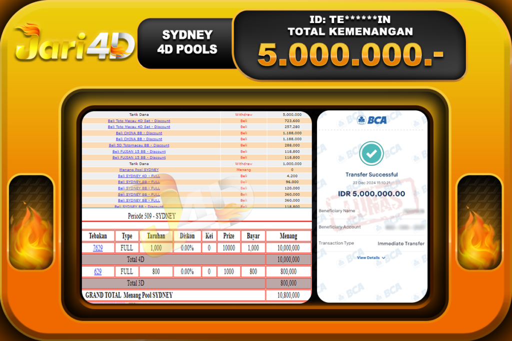 Bukti JP SYDNEY Hari ini Di Situs JARI4D Sebesar Rp.5.000.000,- Tuntas !!