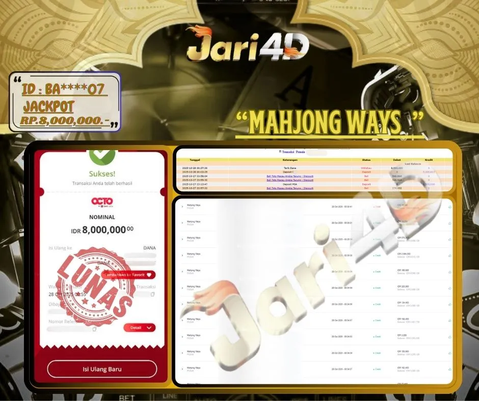 Bukti JP MAHJONG WAYS Hari ini Di Situs JARI4D Sebesar Rp.8,000,000,- Tuntas !!