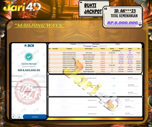 Bukti JP MAHJONG WAYS Hari ini Di Situs JARI4D Sebesar Rp.8,000,000,- Tuntas !!