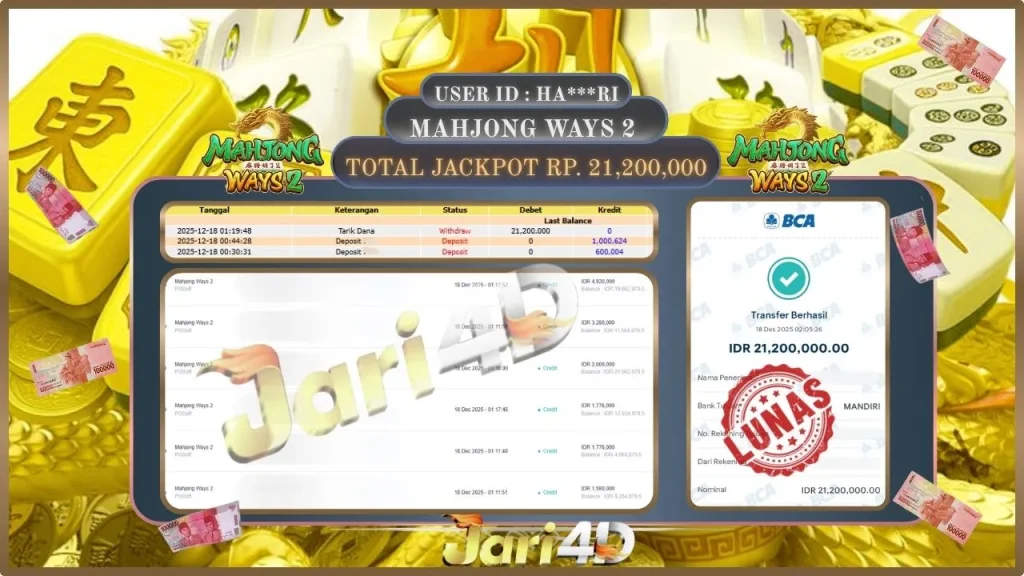 Bukti Withdraw Kemenangan Jackpot Di Situs Jari4D Jari4d Merupakan Situs Judi Online Togel , Slot , Livecasino Resmi Paling Terpercaya Sepanjang Tahun Sampai Saat Ini 2025. Jari4D Juga Merupakan Situs Online Dengan Licensi Kemenangan Jackpot Berapapun Pasti Di Bayar Tuntas !!! Tanpa Sedikit-Pun Basaa Basi Dari Pihak Web Dan Management Withdraw Jari4D. Kemenangan Berapapun […]