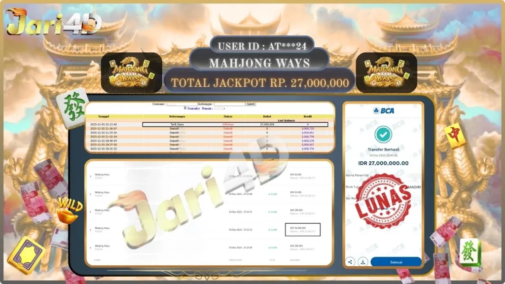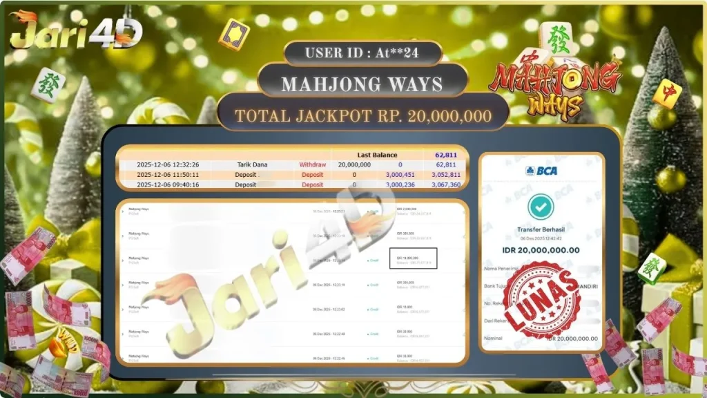 Bukti Withdraw Kemenangan Jackpot Di Situs Jari4D Jari4d Merupakan Situs Judi Online Togel , Slot , Livecasino Resmi Paling Terpercaya Sepanjang Tahun Sampai Saat Ini 2025. Jari4D Juga Merupakan Situs Online Dengan Licensi Kemenangan Jackpot Berapapun Pasti Di Bayar Tuntas !!! Tanpa Sedikit-Pun Basaa Basi Dari Pihak Web Dan Management Withdraw Jari4D. Kemenangan Berapapun […]