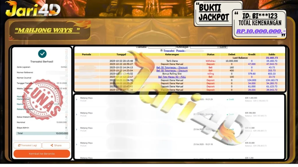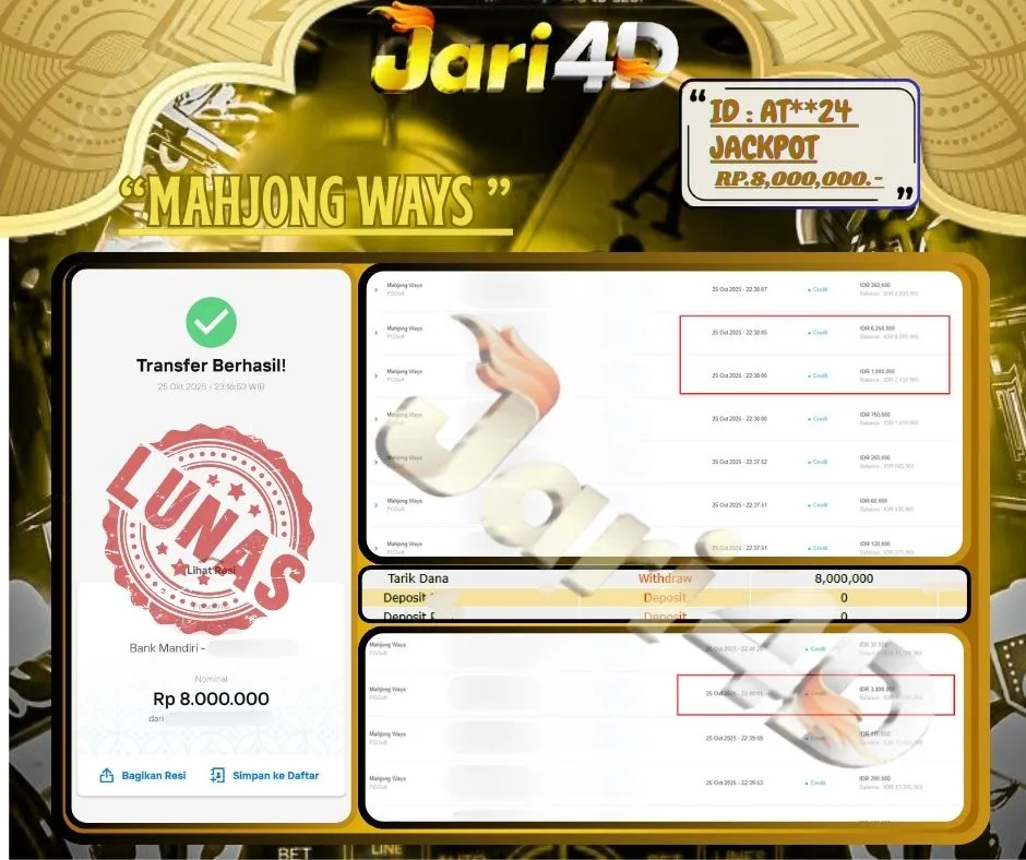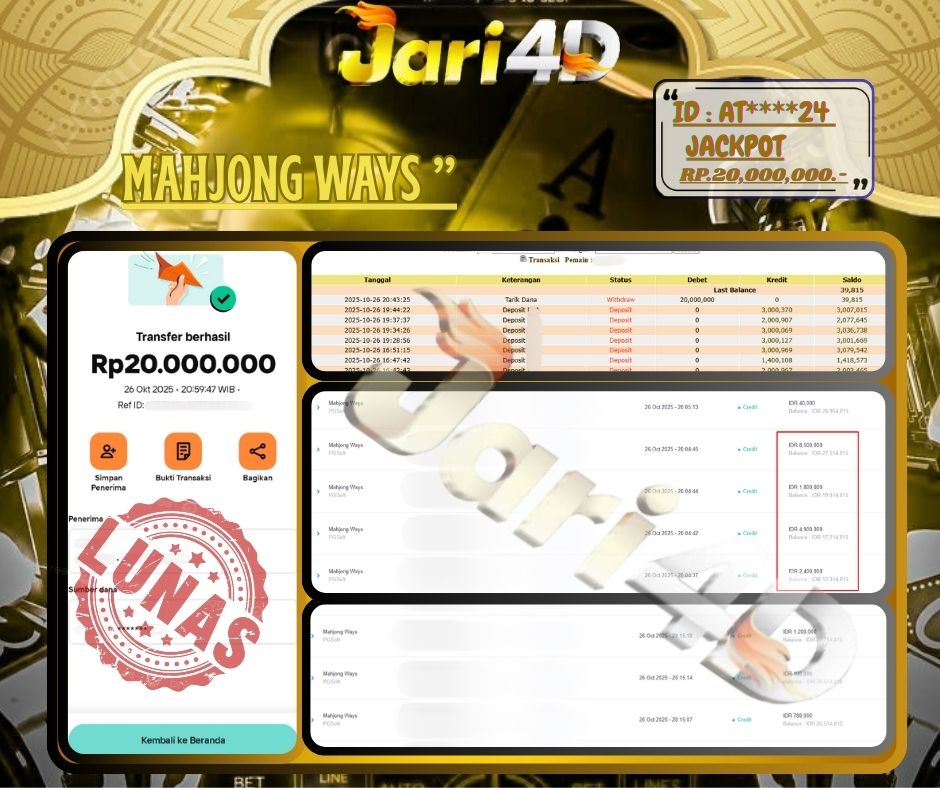 Bukti JP MAHJONG WAYS Hari ini Di Situs JARI4D Sebesar Rp.17,000,000,- Tuntas !! Read More »