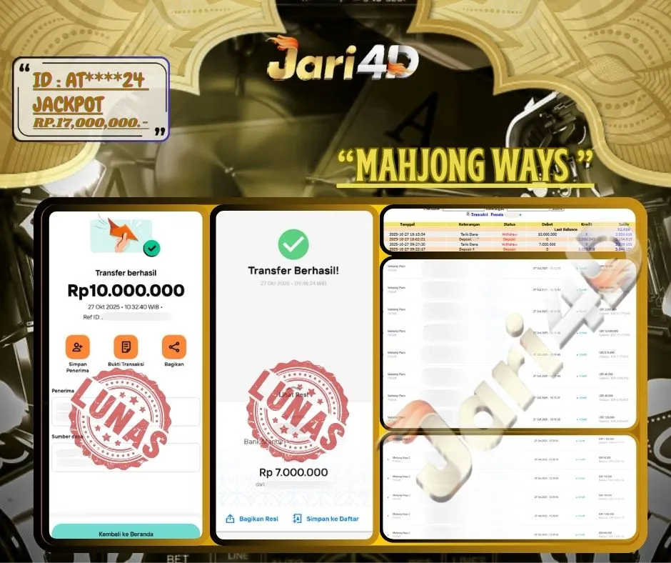 Bukti JP MAHJONG WAYS Hari ini Di Situs JARI4D Sebesar Rp.17,000,000,- Tuntas !!