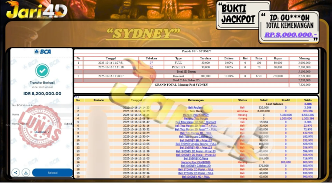 Bukti JP CHINA POOLS Hari ini Di Situs JARI4D Sebesar Rp.11,000,000,- Tuntas !!